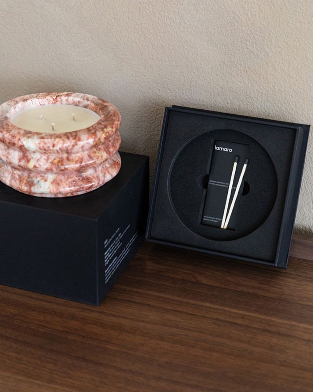 Aus mexikanischem Rosa-Marmor in Handarbeit gefertigt, besticht diese Kerze durch ihre zarte Farbigkeit und sanfte Struktur. Sie verbindet Leichtigkeit mit subtiler Bestimmtheit und wird so zu einem besonderen Statement Piece. Gefüllt mit einer exklusiven Wachskomposition aus Soja, vereint sie die Natürlichkeit des Steins mit dem Erlebnis von Licht und Duft. Nach dem Abbrennen bleibt der Steinkörper erhalten und lässt sich vielseitig weiterverwenden.