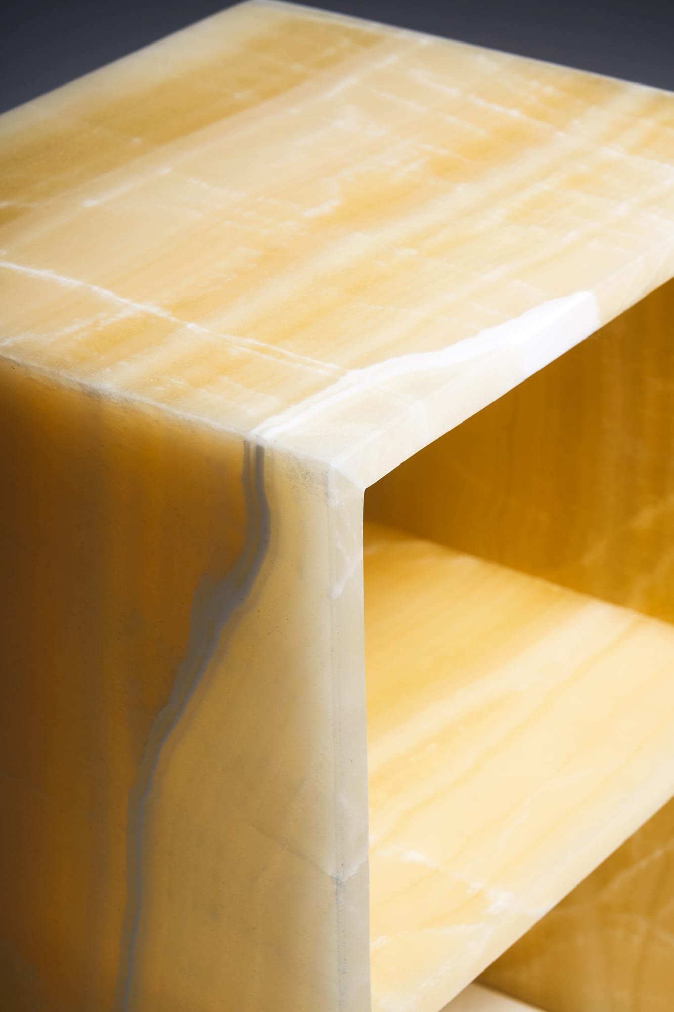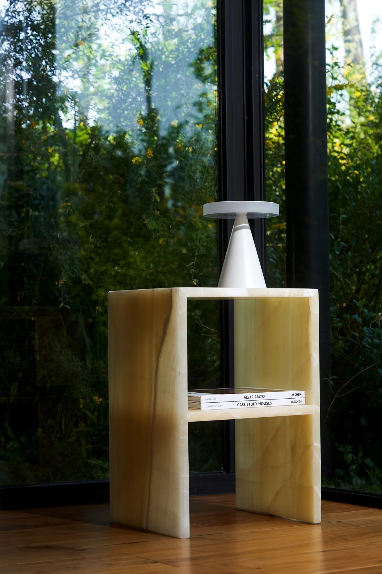 Der Sideliner ist ein eleganter Blickfang. Das schlichte, aber fesselnde Design vermittelt zeitlose Ruhe und ergänzt jeden Wohnraum mit künstlerischer Präsenz. Mit seinen grosszügigen Flächen eignet sich der Sideliner als Nachttisch oder Beistelltisch. Gefertigt wird er aus Onyx Blanco – einem milchig-weissen Naturstein aus Mexiko mit zarter Transparenz und feiner Maserung. Jeder Tisch ist ein Unikat, gefertigt aus 100 % Onyx mit einer Plattendicke von 2 bis 2.5 cm. Der Sideliner verbindet Funktionalität, zurückhaltende Schönheit und die besondere Ausstrahlung eines natürlichen Materials, das Ruhe und Charakter zugleich ausstrahlt.