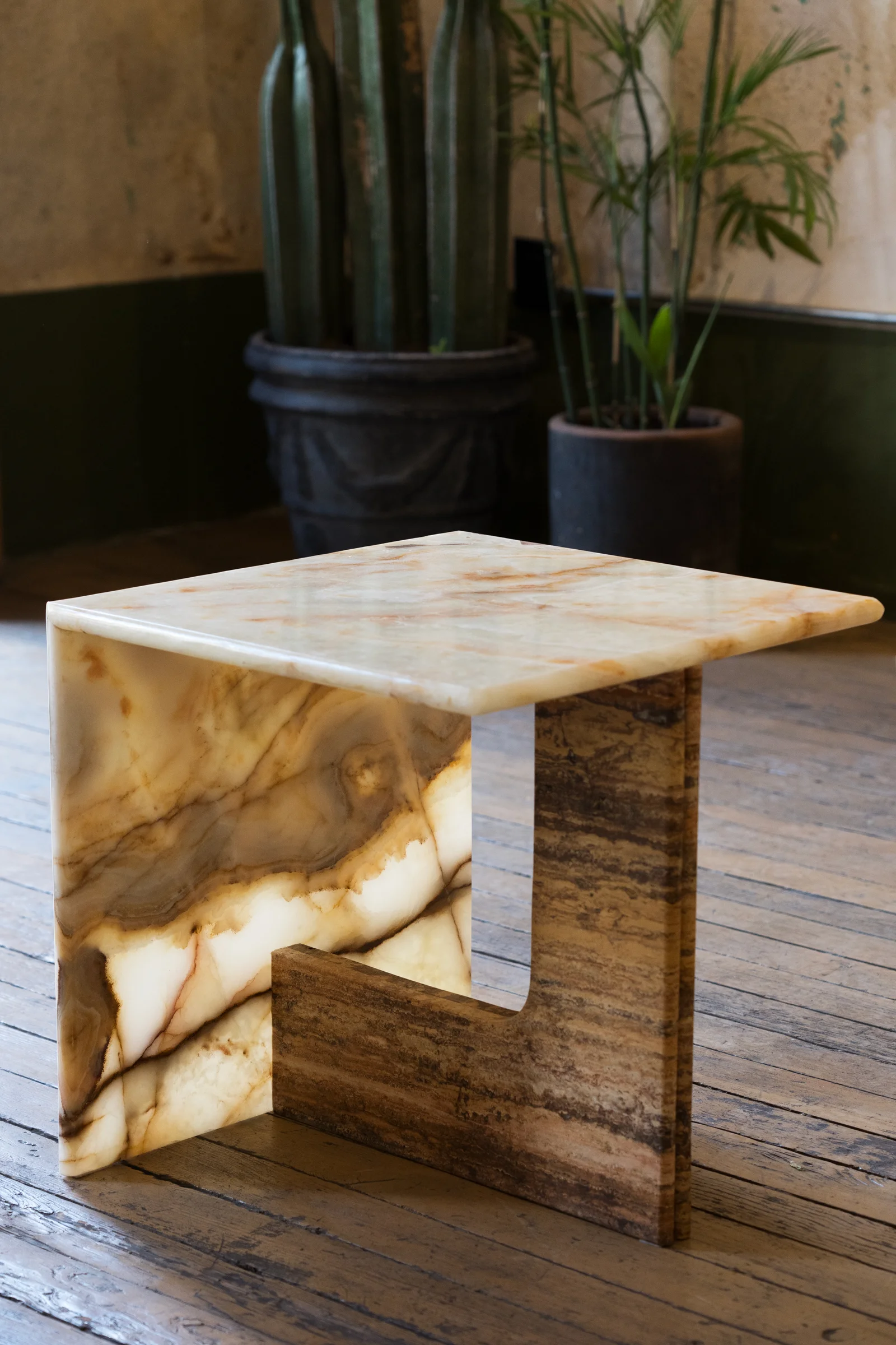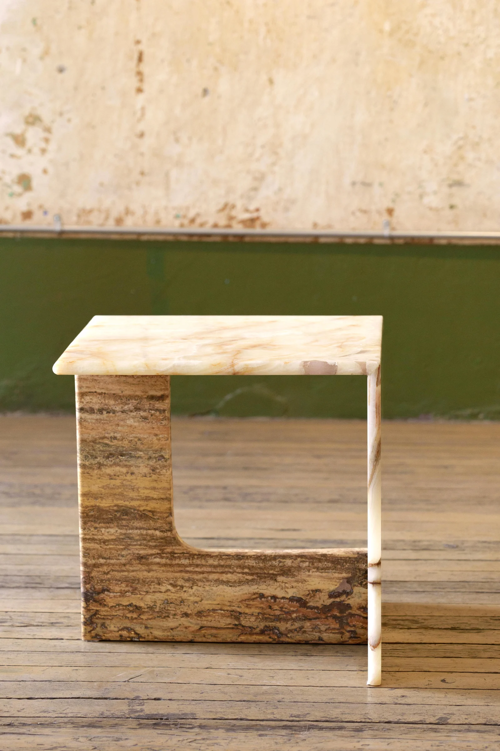 Der Fusiontable besticht durch das kunstvolle Zusammenspiel zweier kontrastierender Natursteine. Die präzise Materialkombination schafft eine harmonische Balance zwischen verspielter Leichtigkeit und zeitloser Eleganz. Gefertigt aus 100 % Naturstein mit einer Plattenstärke von 2 bis 2,5 cm ist der Fusiontable sowohl ein funktionales Designstück als auch ein ästhetisches Statement. Ob als Couchtisch oder Beistelltisch – er bringt die Schönheit und Vielfalt der Natur direkt in Ihr Zuhause.