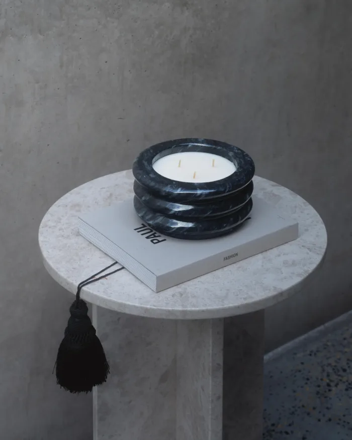 Gefertigt aus mexikanischem grau-schwarzem Marmor und in Handarbeit vollendet, bringt diese Kerze eine ruhige, kraftvolle Präsenz in jedes Interieur. Die kühle Farbigkeit und feine Struktur machen sie zu einem markanten Statement Piece. Mit einer exklusiven Wachskomposition aus Soja befüllt, vereint sie die Stärke des Steins mit der Atmosphäre von Licht und Duft. Nach dem Abbrennen bleibt der Steinkörper erhalten und kann vielseitig weiterverwendet werden.