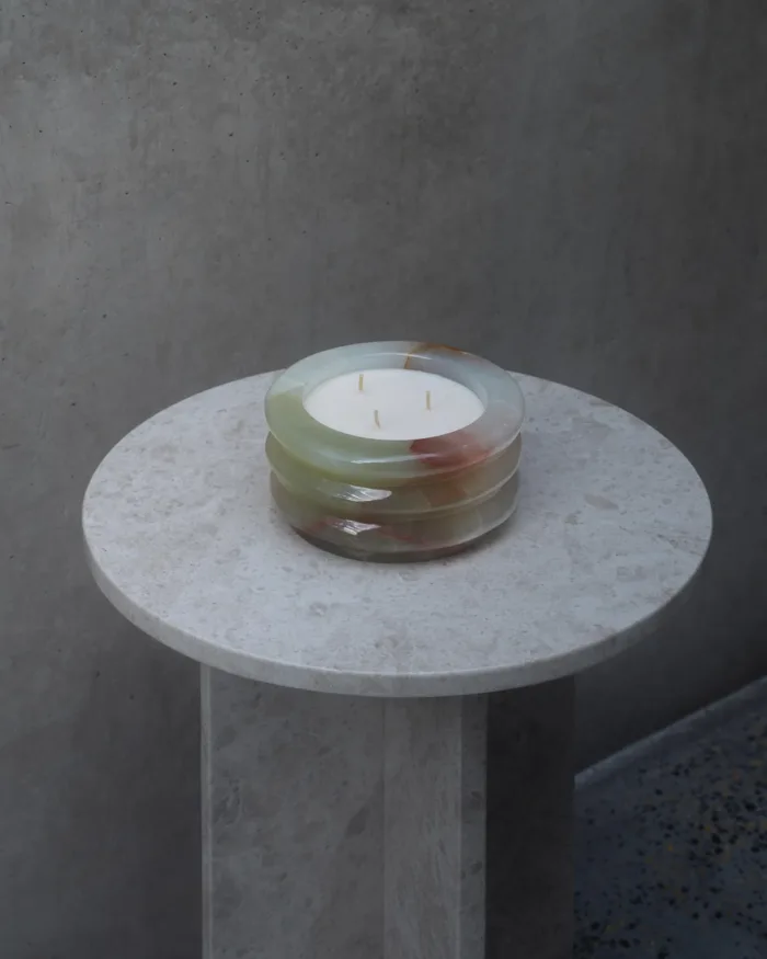 Aus mexikanischem Onyx Verde in Handarbeit gefertigt, ist diese Kerze ein Objekt von besonderer Ausdruckskraft. Der Stein zeigt natürliche Farbspiele in Grünnuancen und macht jede Kerze zu einem unverwechselbaren Statement Piece. Gefüllt mit einer exklusiven Wachskomposition aus Soja, verbindet sie die Kraft des Steins mit dem Erlebnis von Licht und Duft. Nach dem Abbrennen bleibt der handgearbeitete Steinkörper bestehen und kann vielseitig weiterverwendet werden.