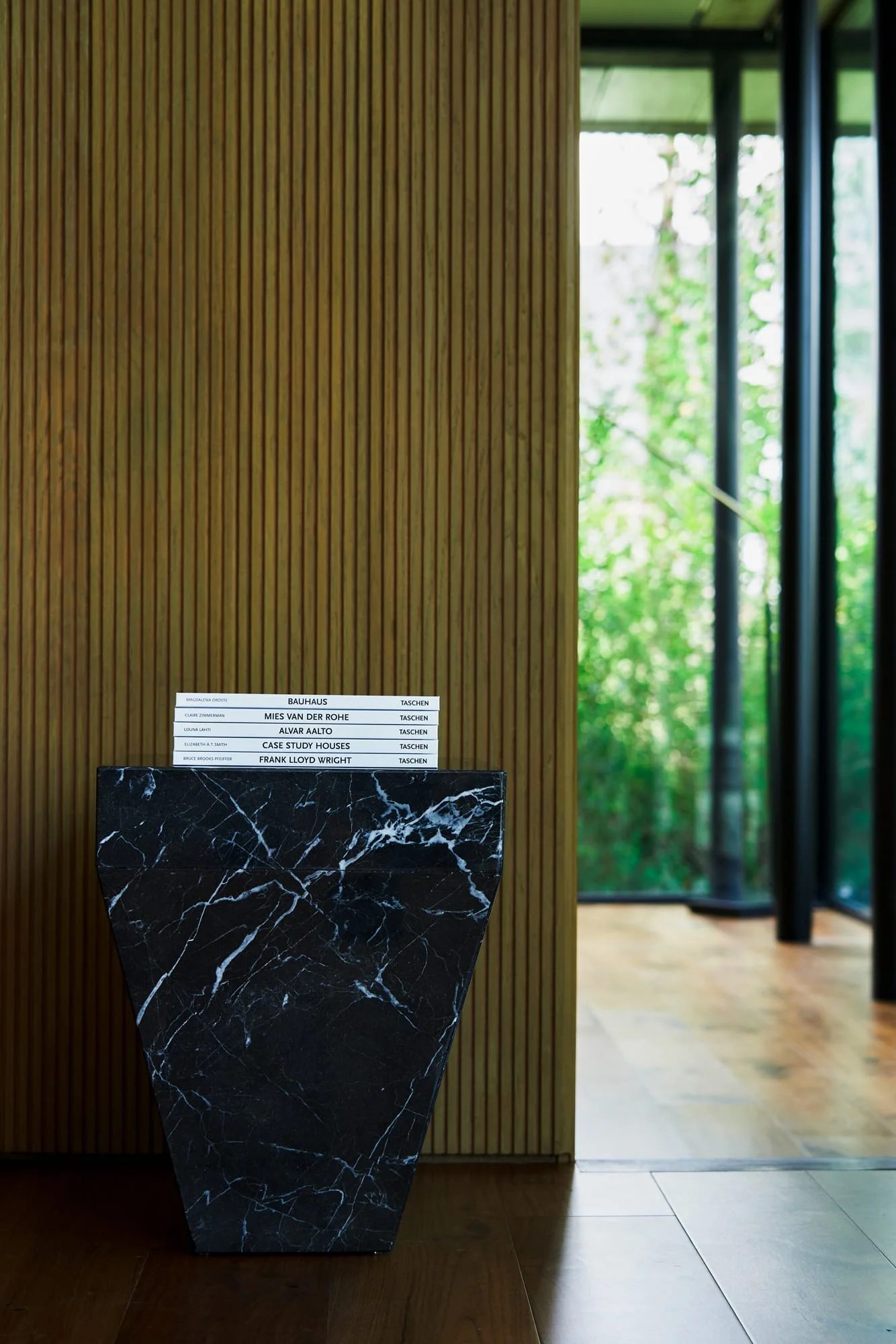 Der Shaper aus Marmor Queretaro vereint kraftvolle Maserung mit einer eleganten Silhouette. Die markanten Adern in Schwarz, Grau und Weiss kommen durch die organisch-weiche Form besonders gut zur Geltung. Trotz dieser Ausdrucksstärke bleibt der Shaper flexibel einsetzbar und harmoniert mit klaren, modernen Einrichtungen ebenso wie mit warmen, natürlichen Materialien. Ein Möbelstück mit Substanz – visuell wie auch haptisch.