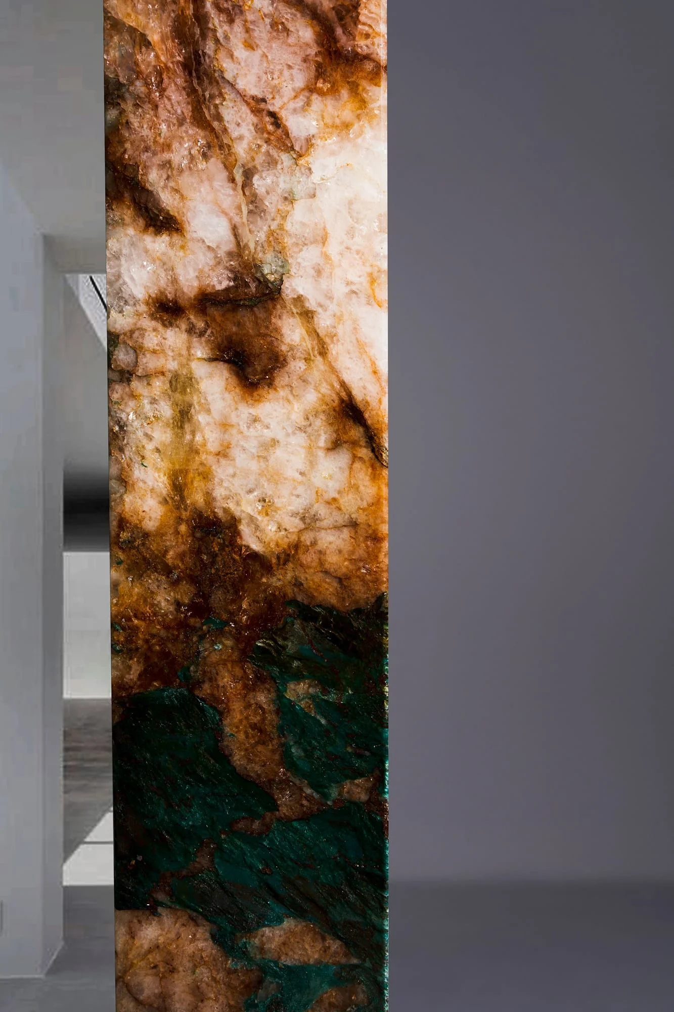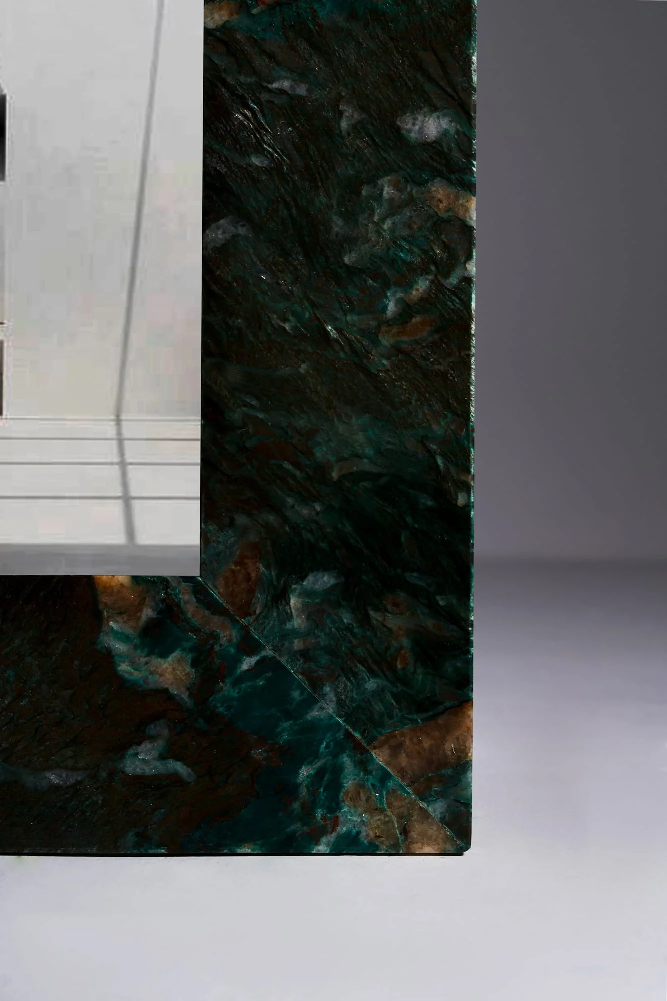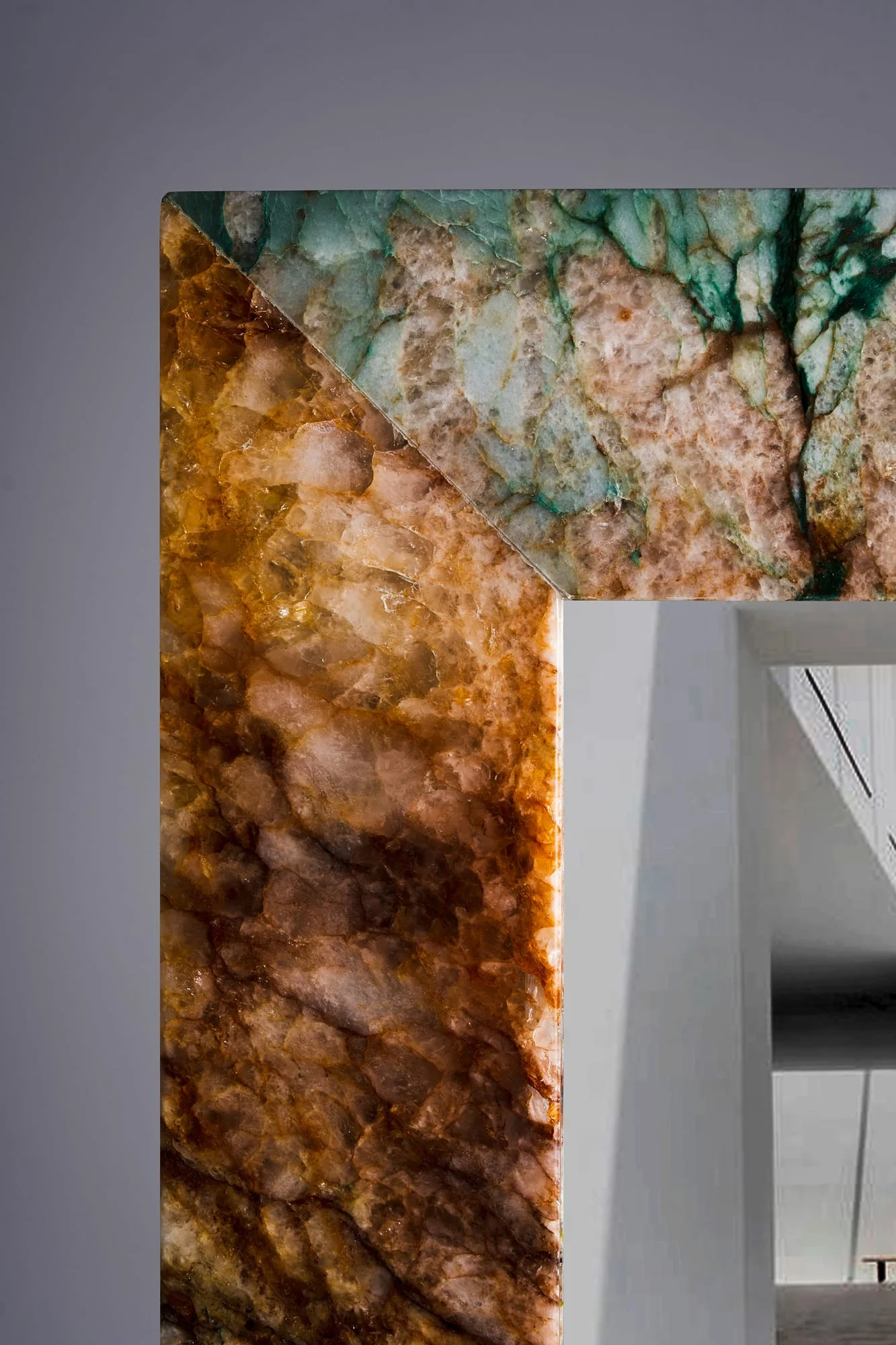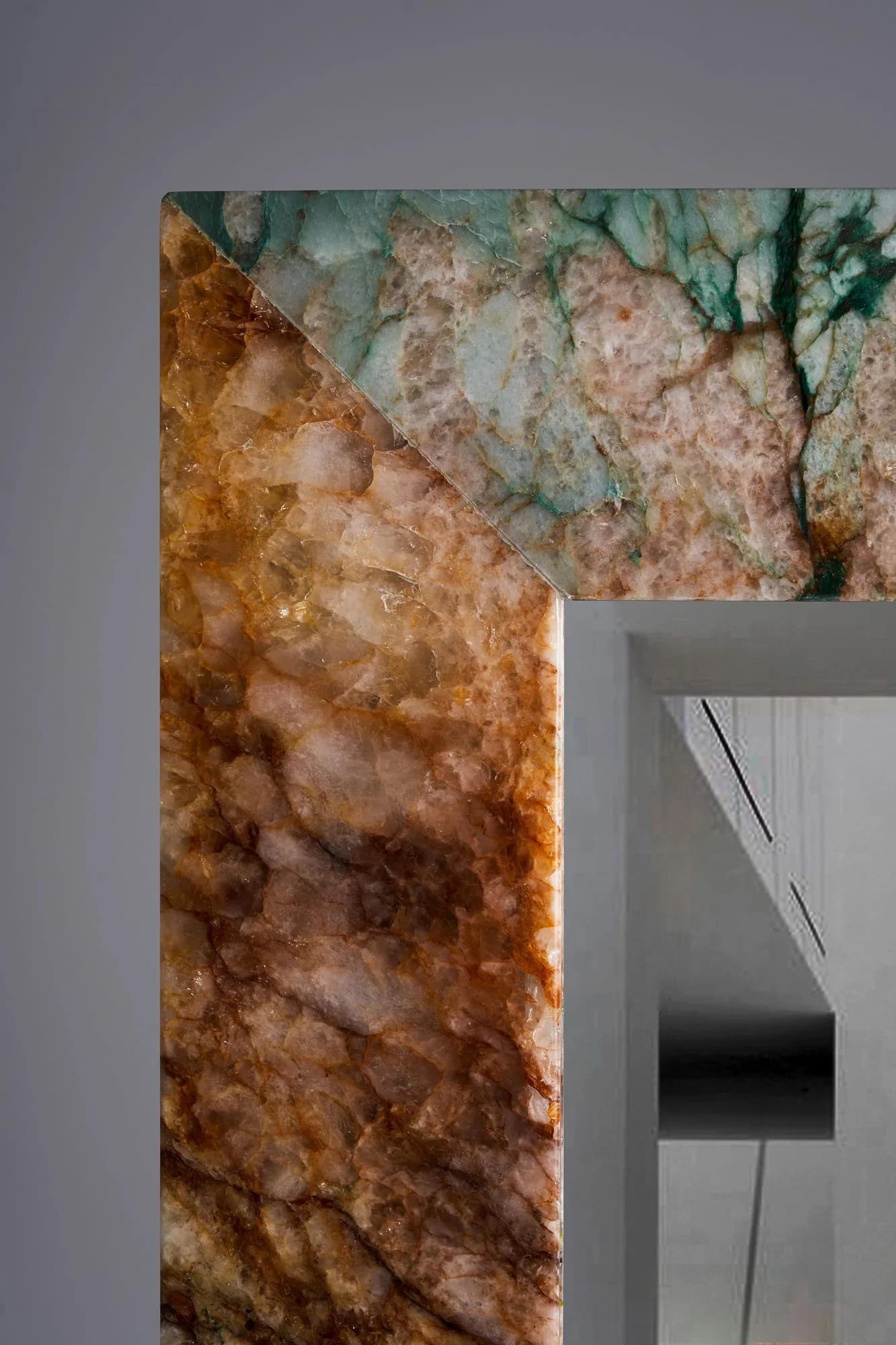 Der Visioner Wandpiegel verbindet Funktionalität mit ausdrucksstarker Ästhetik. Sein Rahmen besteht aus handverlesenem Quarzit – jeder Spiegel der Lamaro Companions Kollektion wird in Mexiko von Hand gefertigt und ist Teil einer limitierten Kollektion.