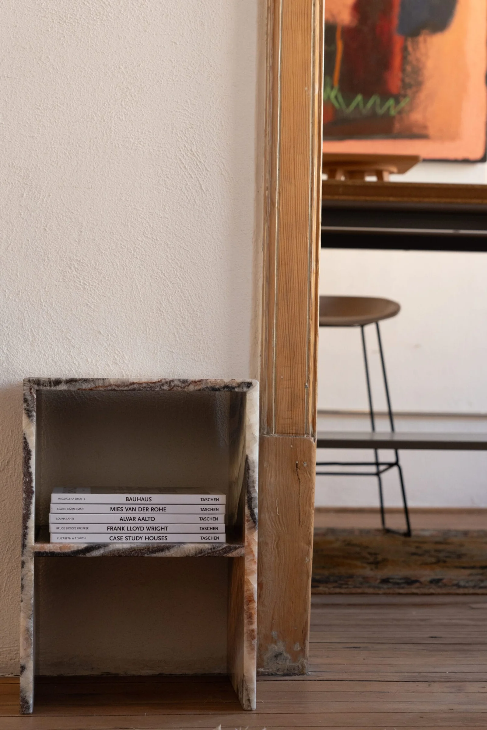 The Companions and Tres Aires collections include a selection of side tables, nightstands and coffee tables – designed in Switzerland and handcrafted in Mexico. Each piece is made from fine Onyx, Marble, Travertine or Quartzite, resulting in furniture with strong character and unique materiality. Every table is one of a kind – shaped by the natural texture of the stone and the precision of traditional craftsmanship. Lamaro furniture pieces are functional design objects with soul: clear in form, unique in expression. Produced in limited editions, they embody origin, quality and timeless elegance.